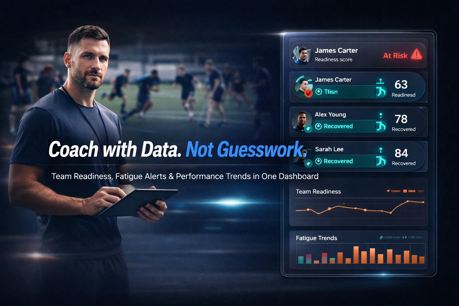 Monitor athlete health, recovery and performance from one centralized dashboard. Identify risks early and personalize training programs using real data. Not guesswork.